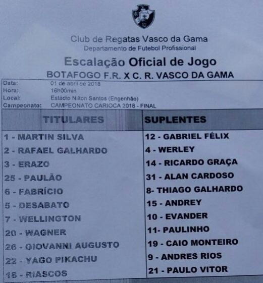 Confira a escalação do Vasco para o 1º jogo da final do Estadual; Paulinho segue no banco