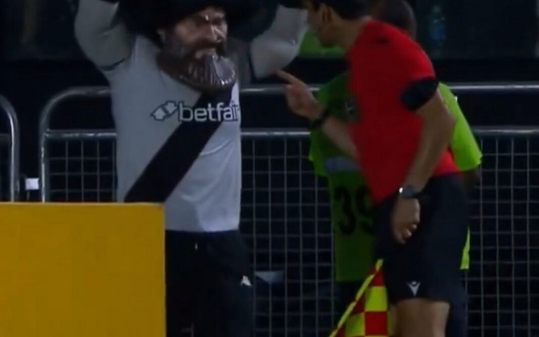Momento em que o assistente dá uma bronca no mascote do Vasco Reprodução/Premiere