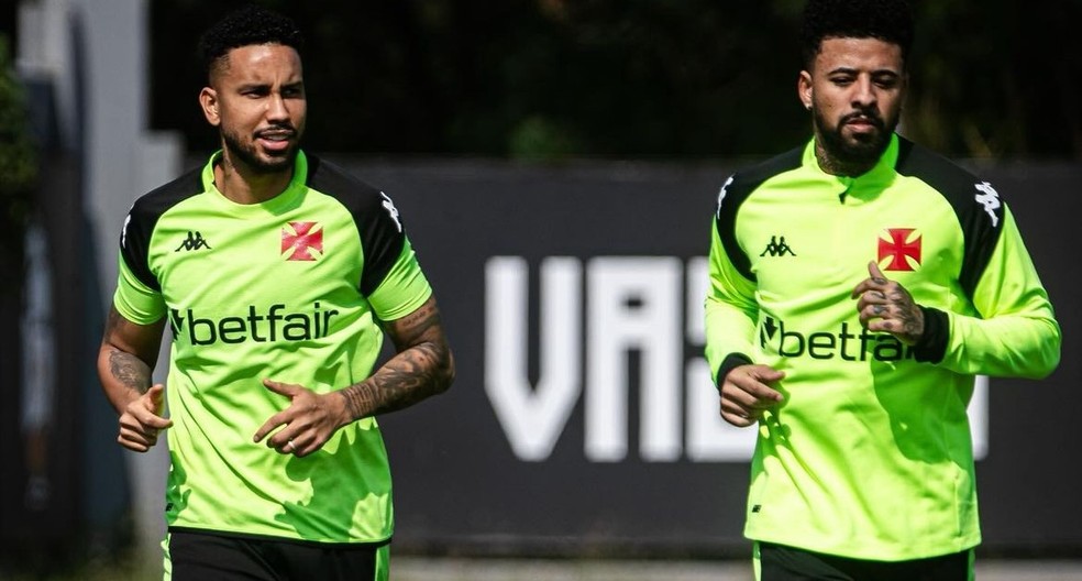 Jair e Paulinho em treino no Vasco — Foto: Leandro Amorim/Vasco
