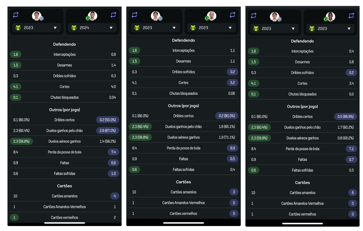 Recém anunciado pelo Vasco da Gama, Maurício Lemos chega para ser titular nessa temporada. Abaixo comparação básica da sua temporada de 2023 comparadas com nossos zagueiros + 2024 do JV
