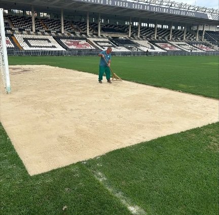 O gramado de São Januário segue em tratamento intensivo para corrigir as manchas visíveis na superfície. Segundo o Podcast Cruzmaltino, o problema é causado por uma mutação da grama, e as pequenas áreas afetadas já foram replantadas, com o processo de recuperação em andamento.