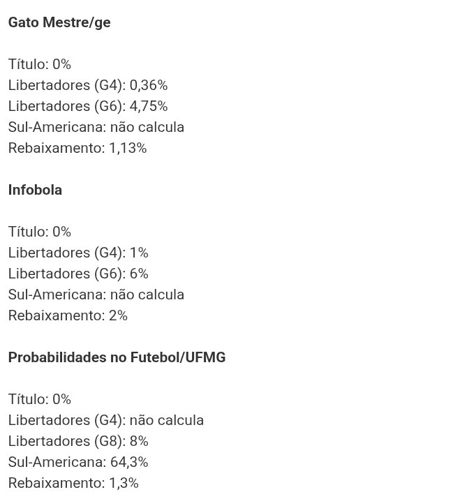 • A probabilidade de classificação para a Copa Sul-Americana é a mais alta (64,3% pela UFMG).