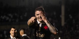 Ovacionado, Vegetti comemora vitória em São Januário com a torcida